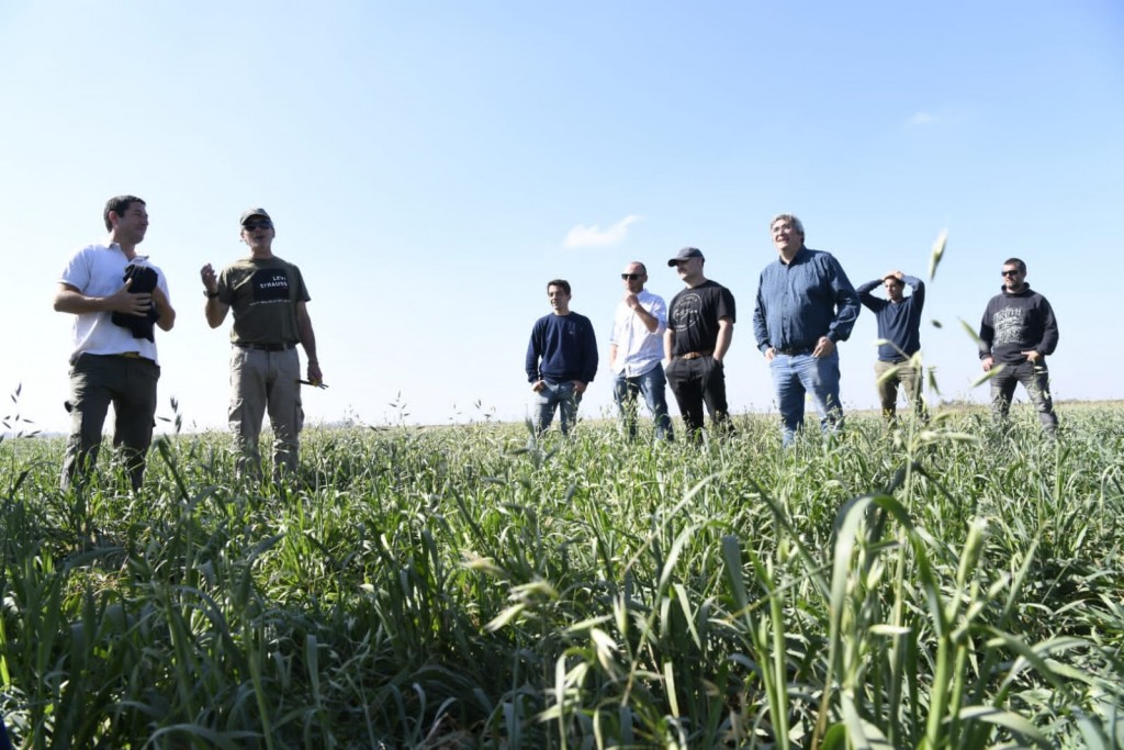 En la Chacra de Coronel Suárez se realizó una recorrida por los módulos ganaderos destinados a la cría de bovinos y toros de campo; se visitaron los campos de cultivo de avena-vicia en pastoreo con recría; se brindaron detalles sobre los ensayos destinados a aumentar la producción de carne; y se compartieron los resultados del trabajo realizado en los módulos agroecológicos.