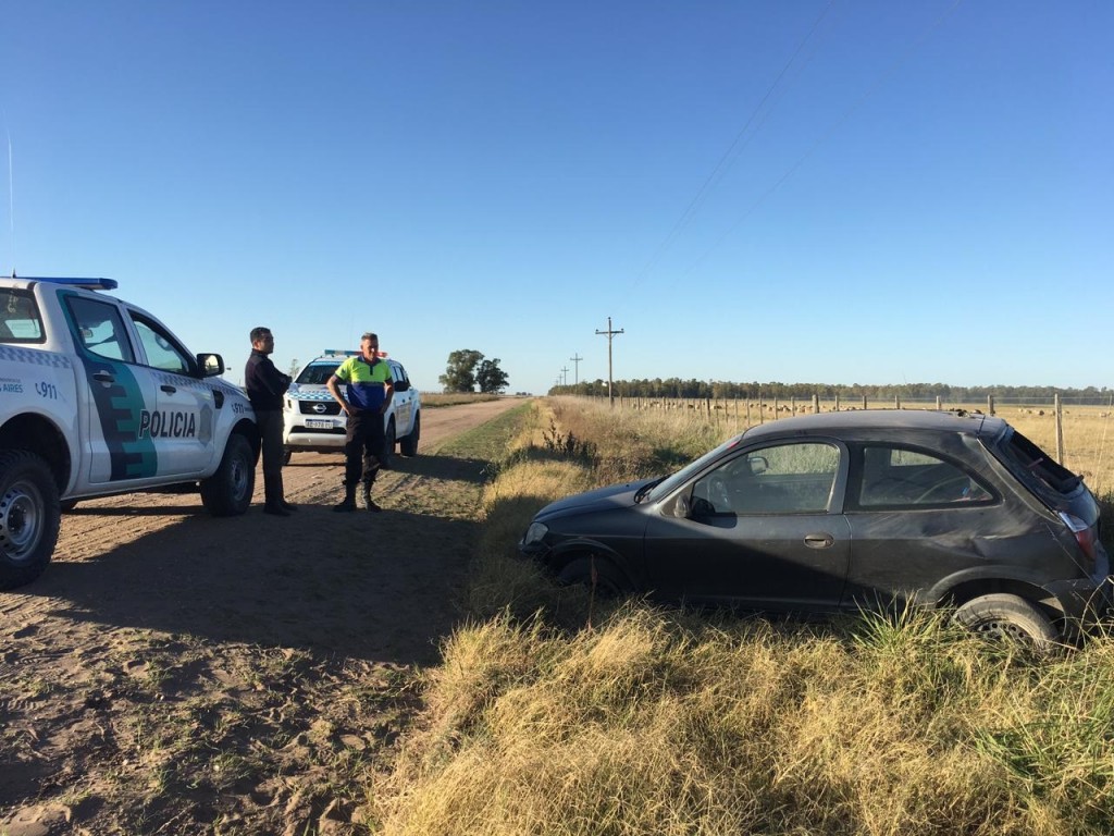 El vehículo es un Suzuqui Fun, con dominio colocado GJB 091 que pertenece a un bolivarense. Arribó al lugar una dotación de Bomberos Voluntarios  a bordo de la Unidad nº5 a cargo del Comandante Martín Moreno.
