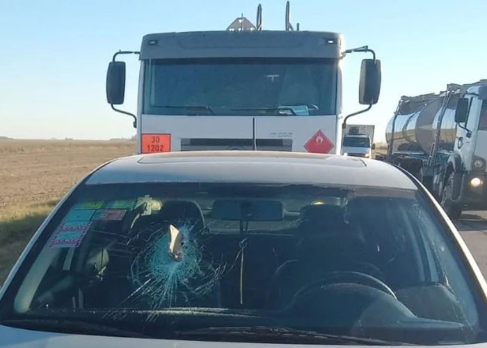 El automóvil, un Volkswagen Bora perteneciente a Remis Escorpio circulaba en dirección Villegas – América detrás de un camión al servicio de YPF, de General Pico (La Pampa),cuando a éste se le partió una llanta desprendiéndose parte del material que se clavó directamente en el parabrisas.-