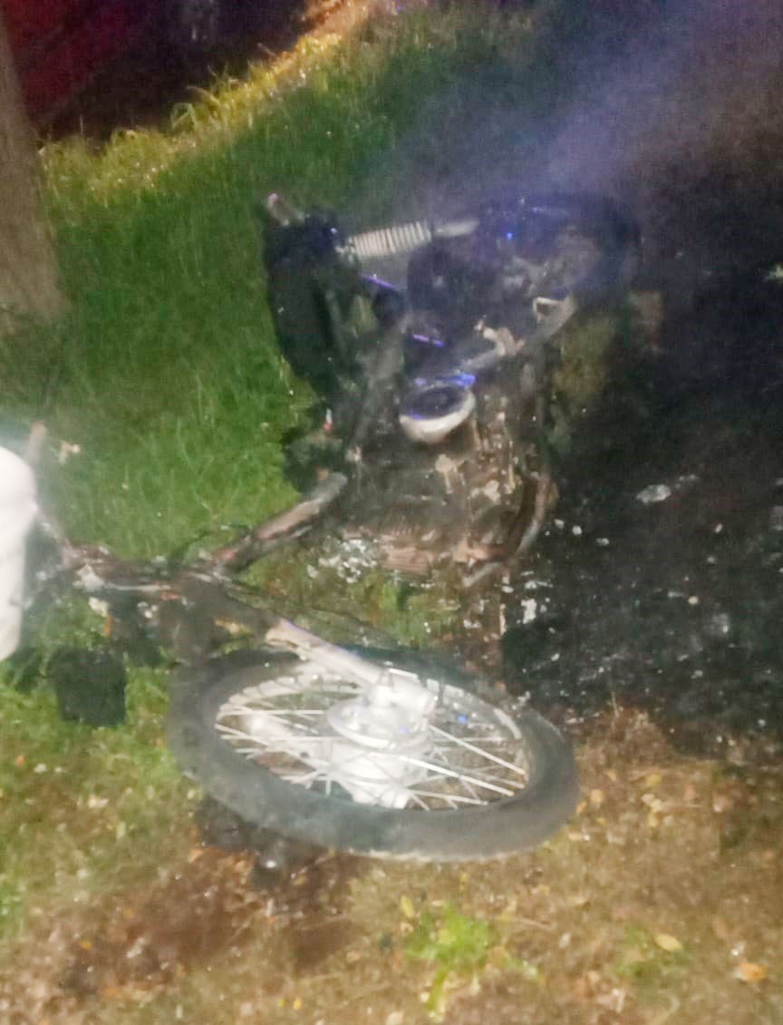 La moto siniestrada es una Zanella 110, con daños muy importantes tras las llamas.