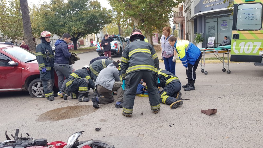 Tras el fuerte golpe en el lateral del auto, la joven cayó a la cinta asfáltica y fue asistida por la doctora Recalt, quien arribó en una ambulancia del SAME local.