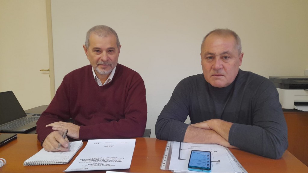 Jorge Campos y Marcelo Pérez, integrantes del Consejo de Administración de la Cooperativa Eléctrica, dieron detalles del avance de las obras previas a la conexión de la Línea 132