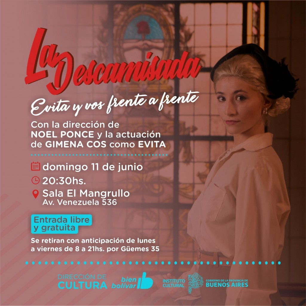 La Dirección de Cultura de la Municipalidad junto al Instituto Cultural de la Provincia de Buenos Aires presentan la obra de teatro “La Descamisada: Evita y vos frente a frente”.-