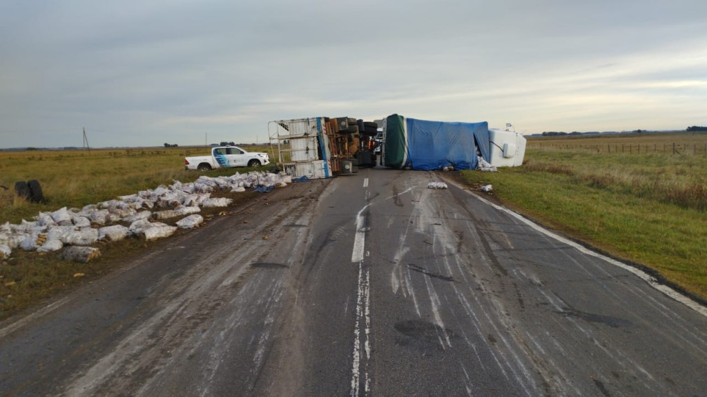 Ruta 226 a Olavarría: El vuelco de camión en Ruta 226 mantiene bloqueado el paso a vehículos pesados desde la mañana