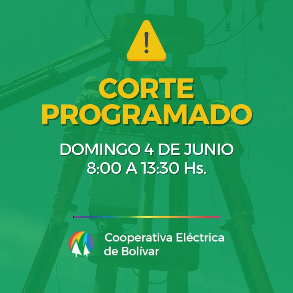 Se prevé corte programado en media tensión para el día Domingo 4 de junio de 8:00 a 13:30 Hs.