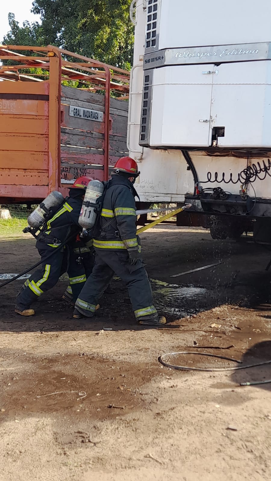 Se registró un principio de incendio en un taller mecánico, cuando intentaban soldar en un Semi Térmico