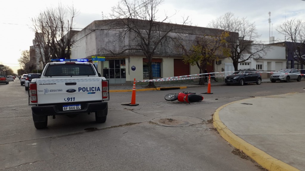 El escenario era como lo grafican las imágenes, una moto caída con el perímetro encintado para no contaminar la escena del hecho, y dos móviles policiales ubicados en los extremos de Sargento Cabral y Olavarría y sargento Cabral y Lavalle.