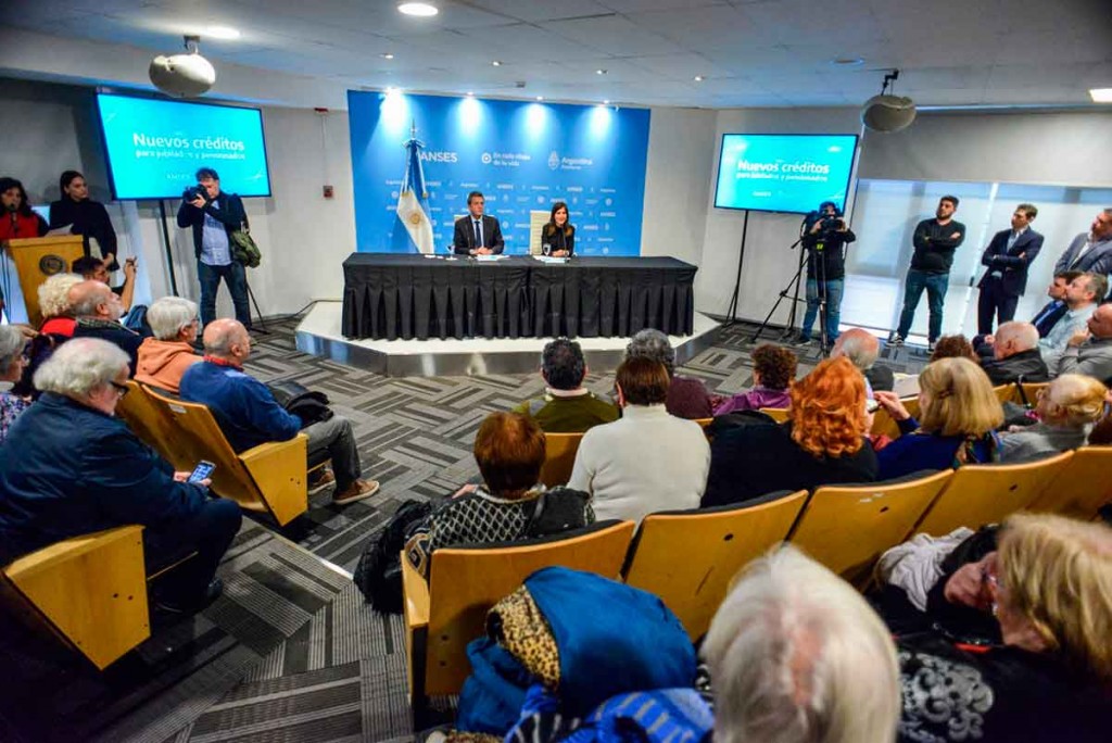 En la sede central de ANSES y con la presencia de personas mayores, la directora ejecutiva de ANSES, Fernanda Raverta, y el ministro de Economía de la Nación, Sergio Massa, anunciaron hoy nuevos Créditos ANSES de hasta 400 mil pesos para jubilados y pensionados, con una Tasa Nominal Actual (TNA) del 29 por ciento, la más baja del mercado.-