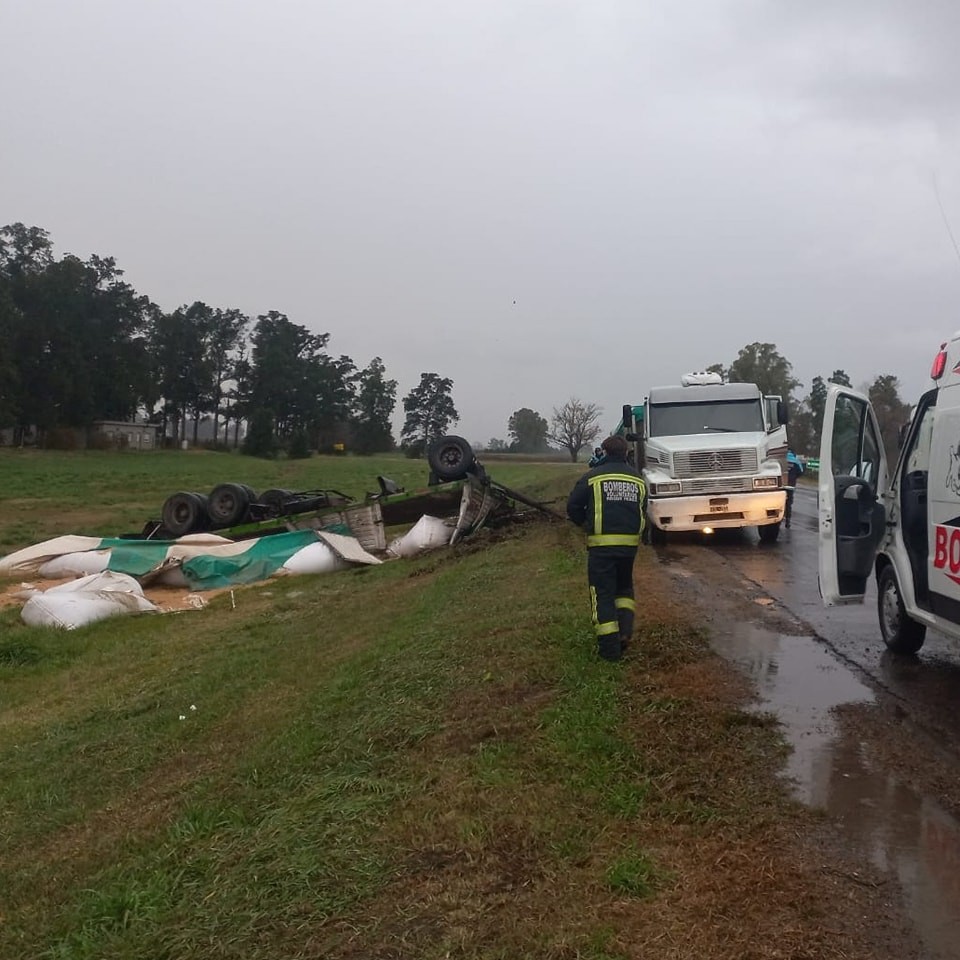 Ruta 205: Vuelco de un acoplado este martes por la tarde