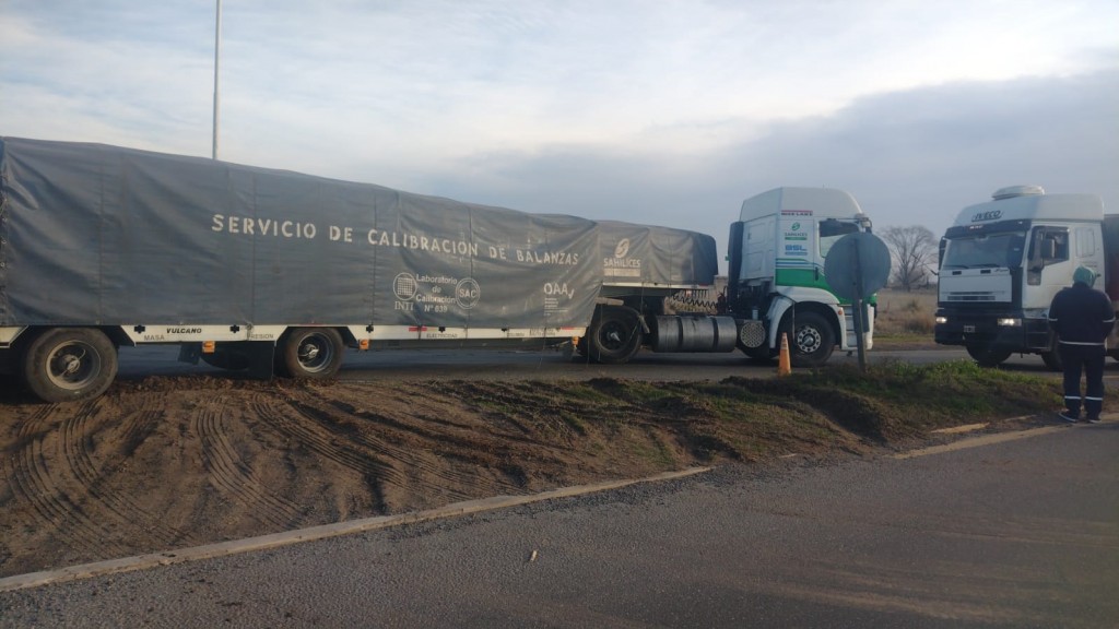 Un camión fue auxiliado en la rotonda que distribuye el tránsito de las rutas 65 y 205