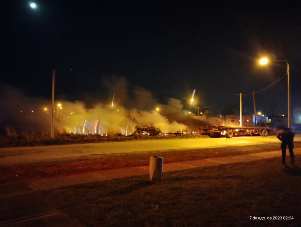 Una dotación de Bomberos Voluntarios acudió ante el llamado emergente (12.50 horas) desde el cuartel hacia la intersección de calles Zapiola y Bernardo de Irigoyen. El Suboficial Mayor Franco Pasos estuvo a cargo y extinguieron los restos y tomaron precauciones de enfriamiento para evitar el rebrote de las llamas.