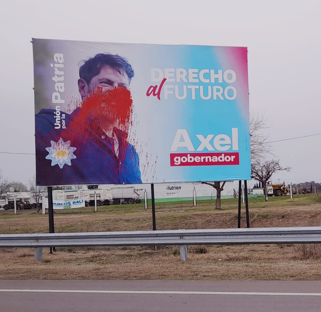 La desagradable sorpresa es que han arrojado pintura y en buena cantidad, de color rojo sobre la imagen del Axel Kicillof y Marcos Pisano, desnudando odio hacia la idea que se contrapone a la de los autores de la agresión, y evidenciando claramente de hasta dónde pueden avanzar teniendo el poder en sus manos.