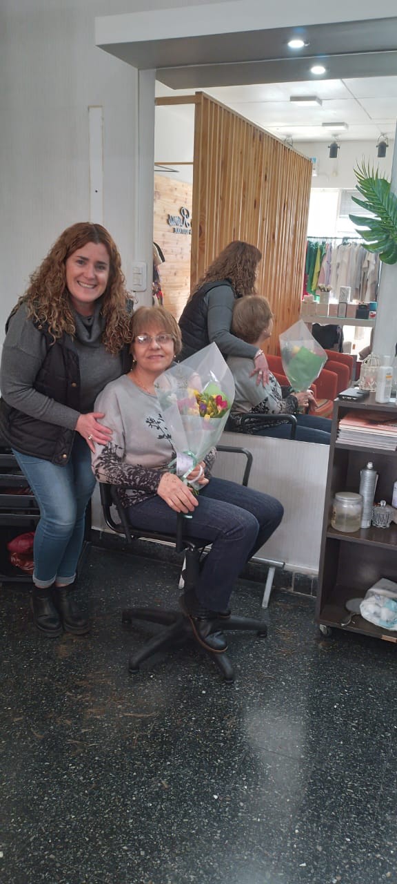 Sandra Renna le entregó un ramo de flores como presente, mientras ella se encontraba en la peluquería y María Ramos nos permitió ingresar al local y entrevistarla.-