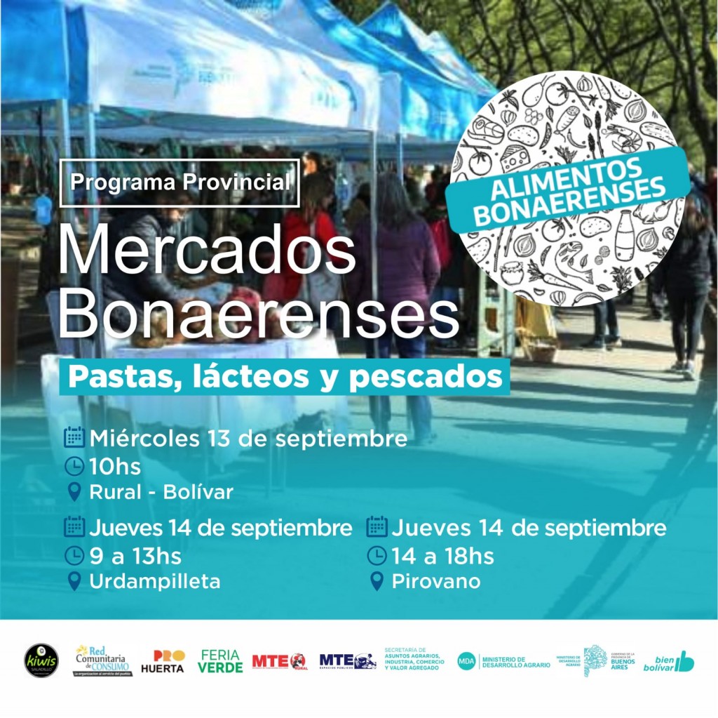 En esta oportunidad, en el marco de la 94° Expo Rural, Mercados Bonaerenses tendrá lugar el miércoles 13 a partir de las 10hs en el sector de la Municipalidad en el predio de la Sociedad Rural de Bolívar.