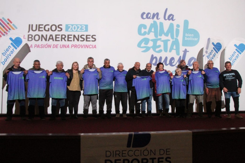Este martes en el Cine Avenida, el intendente Marcos Pisano junto al director de Deportes, Alejandro Viola, despidió a la numerosa delegación que representará a Bolívar en los Juegos Bonaerenses 2023 y les entregó indumentaria oficial que utilizarán durante la competencia.