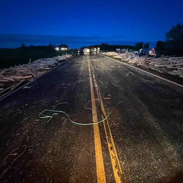 Aproximadamente a las 5 de la mañana de este miércoles, se produjo el vuelco de un camión que transportaba varillas de madera, a la altura de Las Tunas