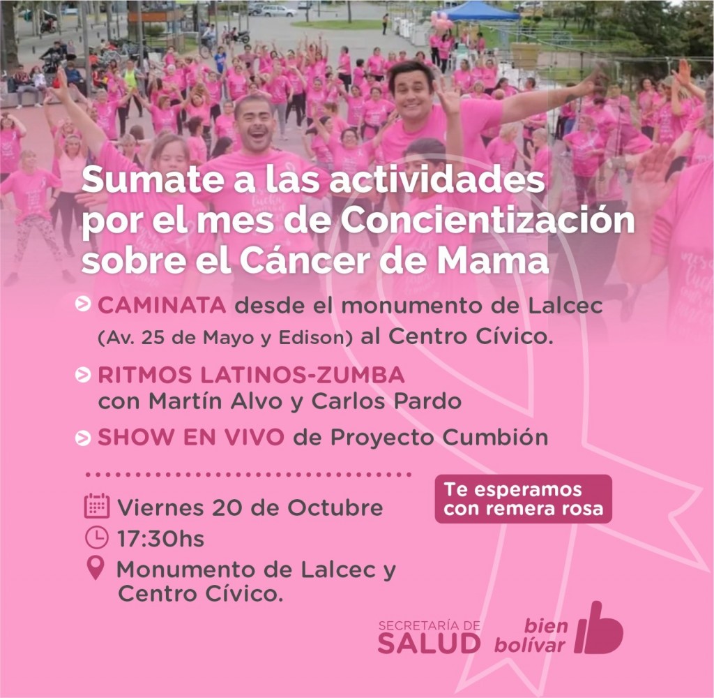Se invita a toda la comunidad a participar de las actividades gratuitas y a sumarse con remera color rosa haciendo alusión al color característico de la campaña preventiva.