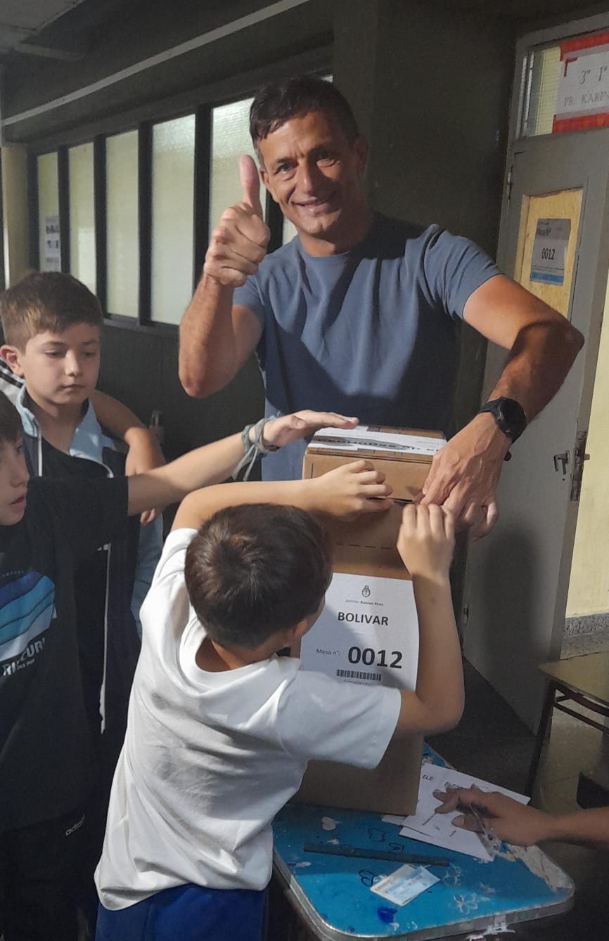 El Senador Provincial Eduardo, votó acompañado de sus tres hijos y luego dialogó con la prensa de Bolívar. Destacó el desarrollo sin inconvenientes que lleva el acto eleccionario.-