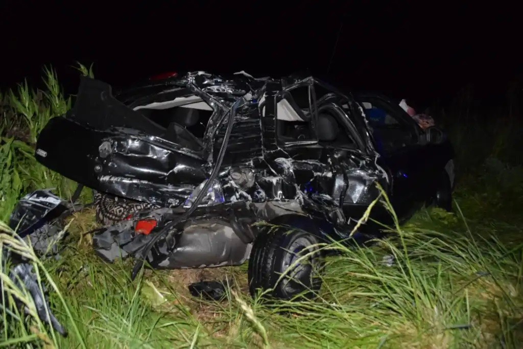 Los vehículos circulaban en sentido Olavarría-Laprida cuando, por causas que se investigan, el camión embiste al automóvil que terminó haciendo un trompo y en la banquina contraria