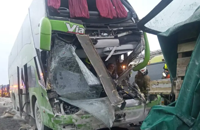 En el lugar impactaron por alcance un colectivo de larga distancia de la empresa Vía Bariloche que se dirigía Retiro y un camión Mercedes Benz patente RUB 901 que transportaba bolsas de cal.