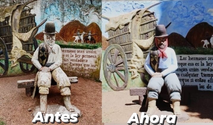 En este marco, queremos compartir con ustedes las fotos de la restauración del monumento al gaucho, ubicado en la plaza Casimira Barroso de Bolívar.