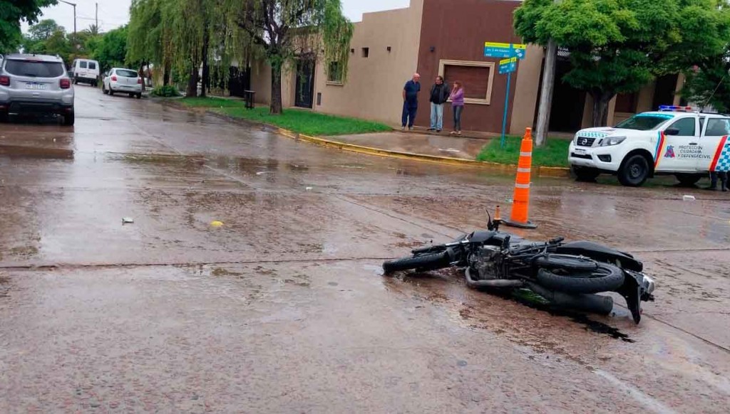 Se registró la colisión entre un vehículo Jeep Renegade, con dominio colocado AF553EY conducido por un masculino mayor de edad. Por otra parte, una moto Honda Invicta, con dominio colocado 944LHF conducida por un joven.