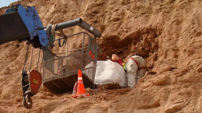 Los restos fósiles del gliptodonte fueron hallados en 2015 en el predio de la empresa Cementos Avellaneda, de Olavarría, donde se encuentra la formación El Polvorín.