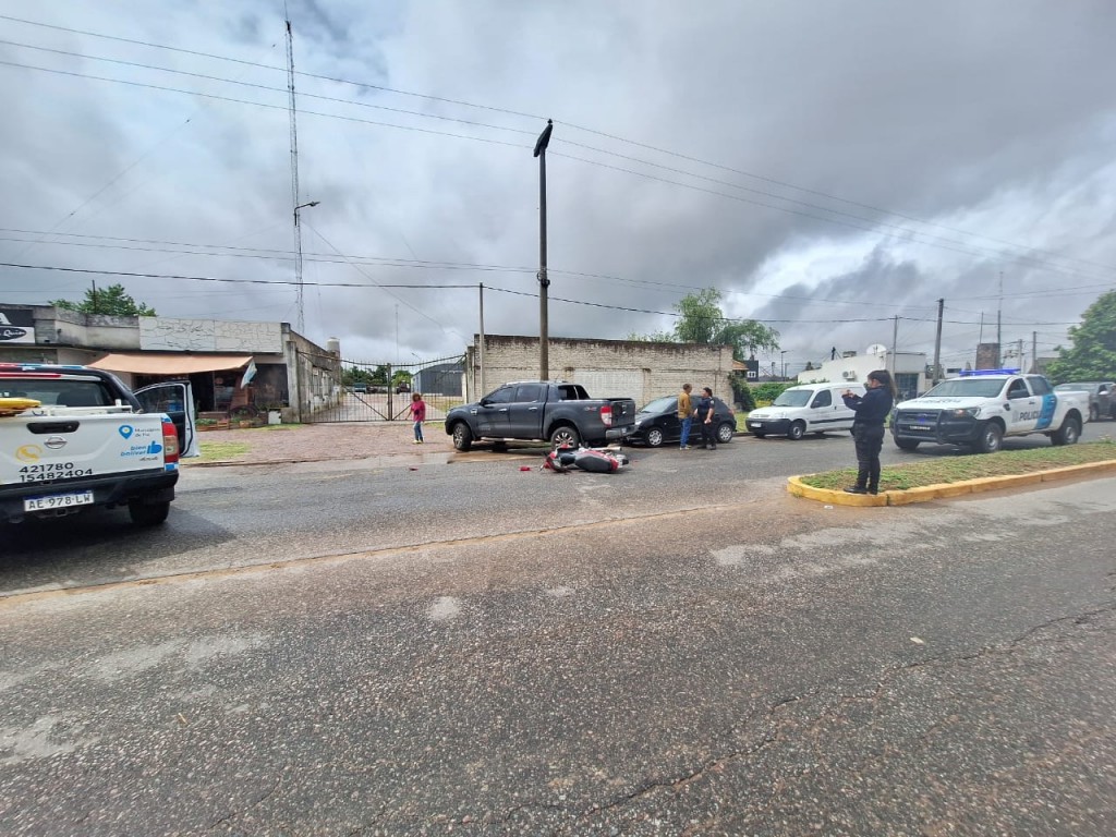 Impacto entre una camioneta y una moto, derivó con una mujer hospitalizada