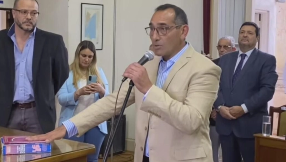 Alrededor de las 18 horas fue recibido en el despacho municipal por el saliente alcalde, Hernán Bertellys para firmar el traspaso y tiempo más tarde se dirigió al recinto del Concejo Deliberante para que el nuevo presidente Juan Louge le tomara juramento.