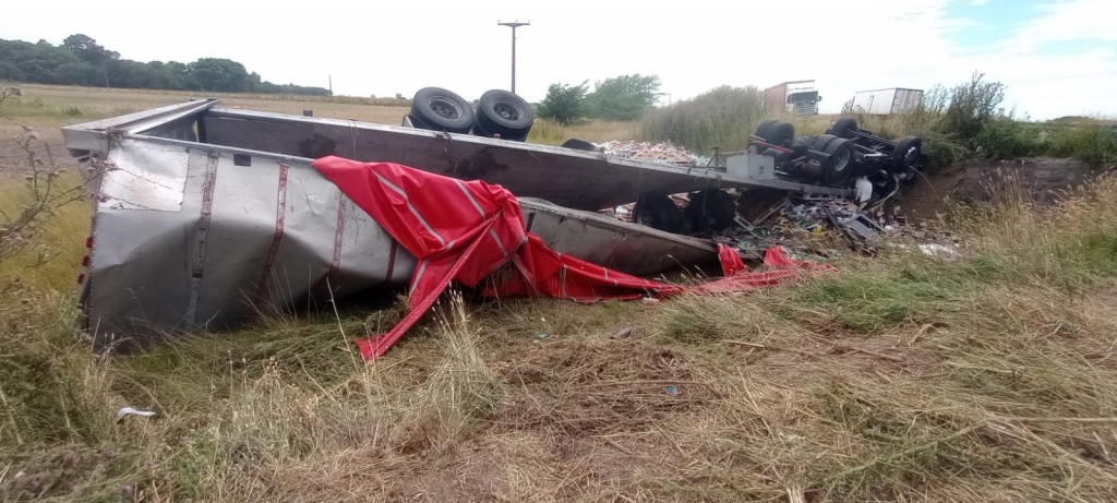 Allí, en dirección a Loma Negra, circulaba un camión oriundo de Bahía Blanca cargado de gaseosas de la línea Coca Cola, que volcó sobre la mano contraria y cayó en una alcantarilla.