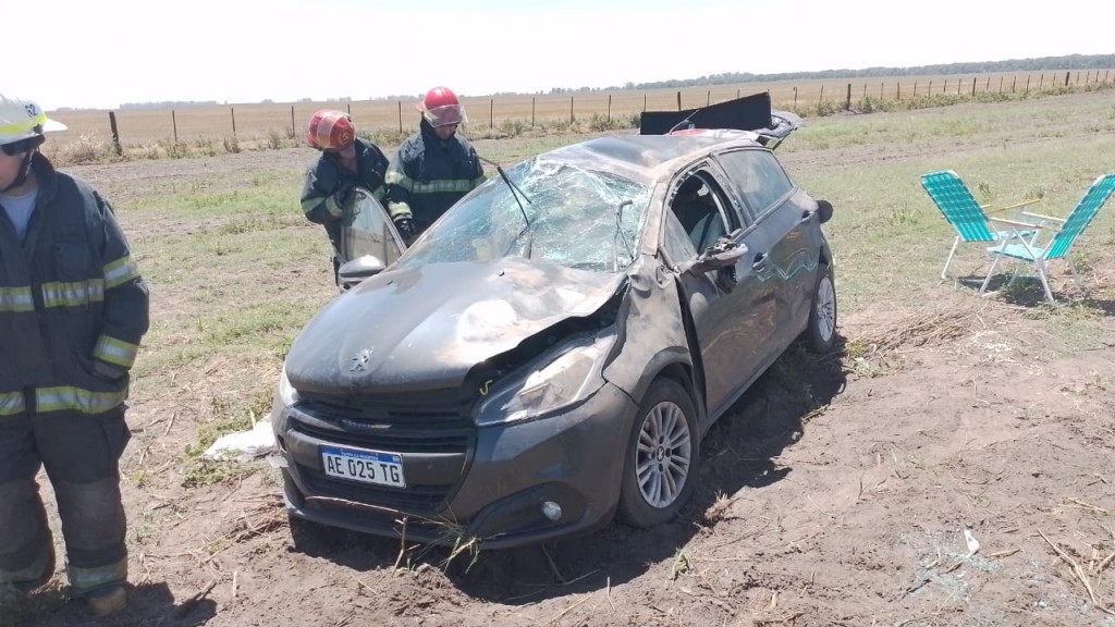 Una pareja de la provincia de San Luís debió ser asistida con criterio preventivo, tras el vuelco el el kilómetro 442, en el límite de jurisdicción de Pehuajó e Hipólito Irigoyen
