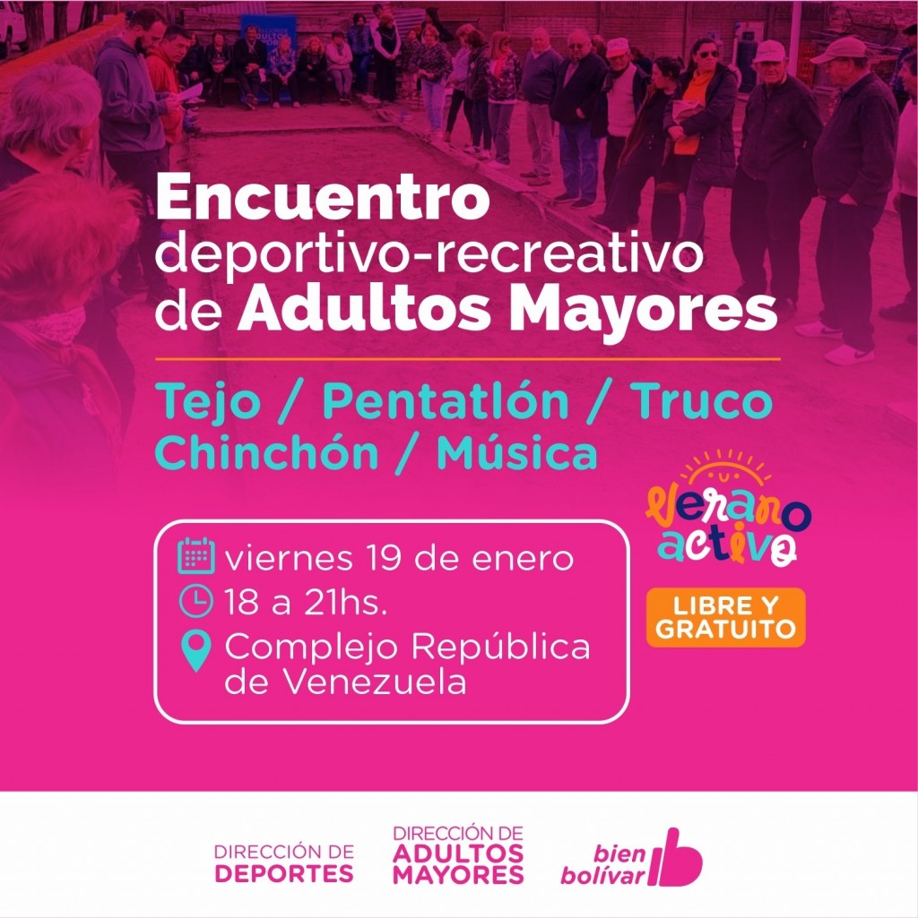 La Dirección de Deportes articuladamente con la Dirección de Adultos Mayores llevará adelante un encuentro deportivo-recreativo para adultos mayores, en el marco de las actividades programadas para este verano activo.-