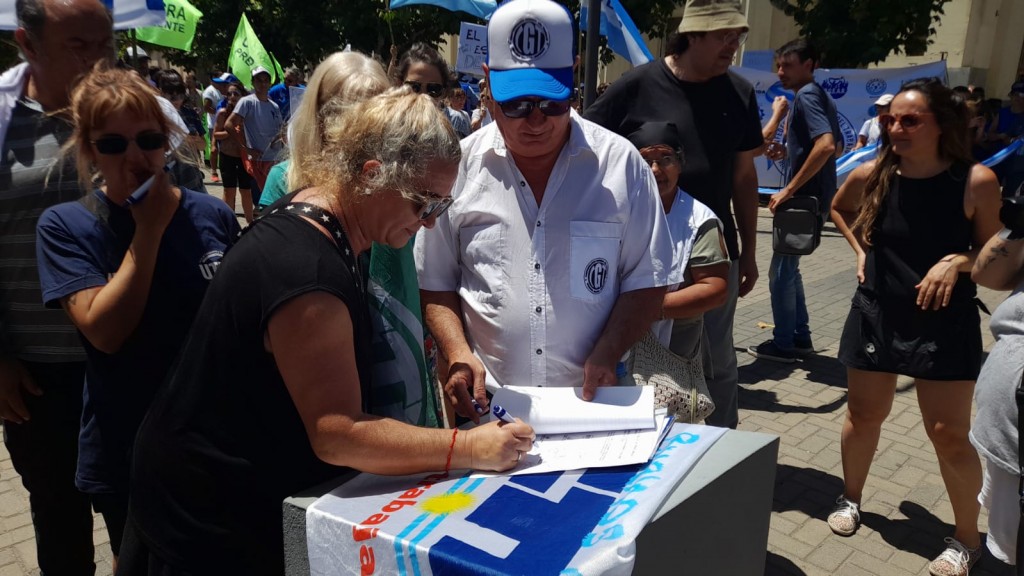 Se entonaron estrofas del Himno Nacional Argentino y luego se trasladaron hacia el Centro Cívico donde firmaron un petitorio que fue entregado a los tres bloques de concejales del Honorable Concejo Deliberante