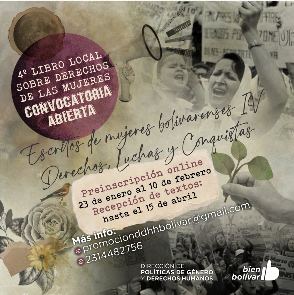 La Dirección de Políticas de Género y Derechos Humanos lanzó una nueva convocatoria a mujeres para participar del cuarto libro de Escritos de Mujeres Bolivarenses, derechos, luchas y conquistas.-