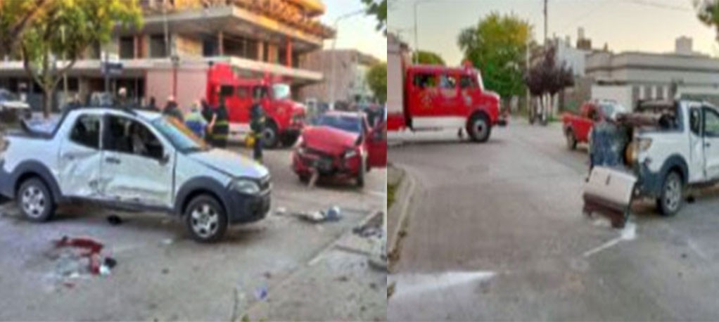 Se registró un accidente vial en la intersección de las calles La Rioja y Santa Fe, donde colisionaron dos camionetas Fiat Strada, una de ellas color rojo y la otra, color blanco.