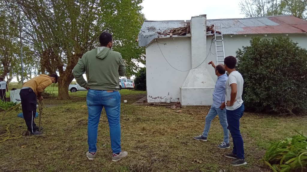 Acompañado por el Secretario de Desarrollo, Alexis Pasos, Pisano recorrió la institución y acompañaron la jornada de trabajo que realiza personal de la Dirección de Defensa Civil de la Municipalidad con el objetivo de reparar daños ocasionados por la tormenta