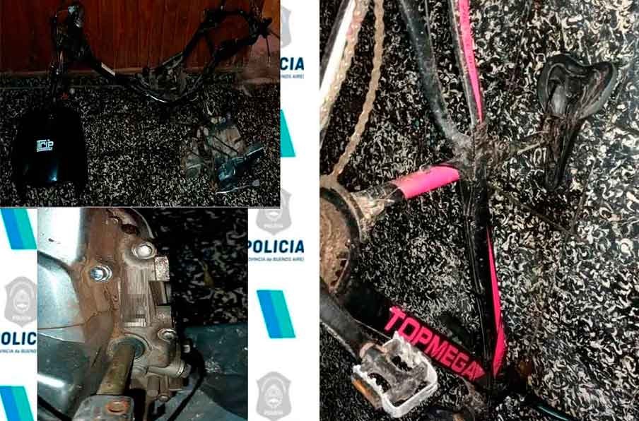 La Policía Departamental de Bolívar informa que personal policial del GTO de la Comisaria local, días atrás por un hecho iniciado por la sustracción de un ciclomotor 110 a una vecina de la localidad, inicio una pesquisa que arrojó como resultado la identificación de los presuntos autores del ilícito y el secuestro del rodado que había sido desarmado íntegramente y oculto en un predio descampado de la zona, junto al mismo se recuperaron dos bicicletas Mountain Bike, también sustraídas en otro hecho.