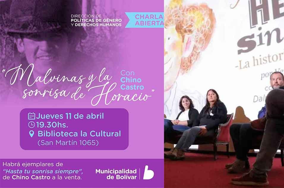 La Dirección de Políticas de Género y Derechos Humanos llevará a cabo un ciclo de charlas llamado “Malvinas y la sonrisa de Horacio”, conjuntamente con el periodista y escritor bolivarense Chino Castro, que comenzará el próximo martes 9 de abril a las 19.30hs en la Biblioteca La Cultural.-
