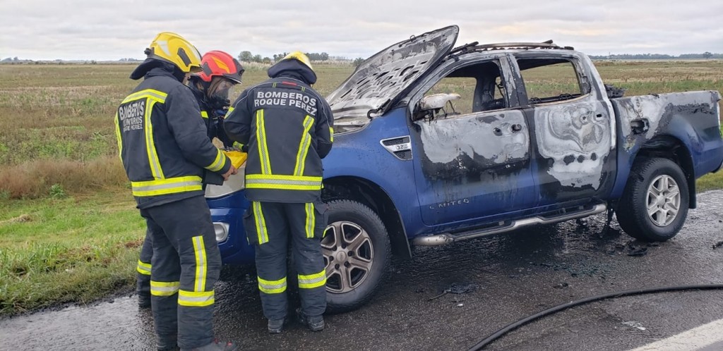 Bomberos Voluntarios de Roque Pérez acudieron a la emergencia tras el llamado del conductor, pero los daños fueron casi totales
