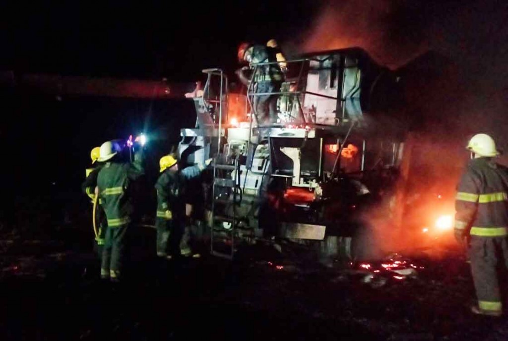 La dotación concurrió a cargo del oficial Franco Rojas, a bordo de la Unidad nº3, y trabajaron en la extinción de las llamas que generaron un daño importante en la máquina cosechadora.