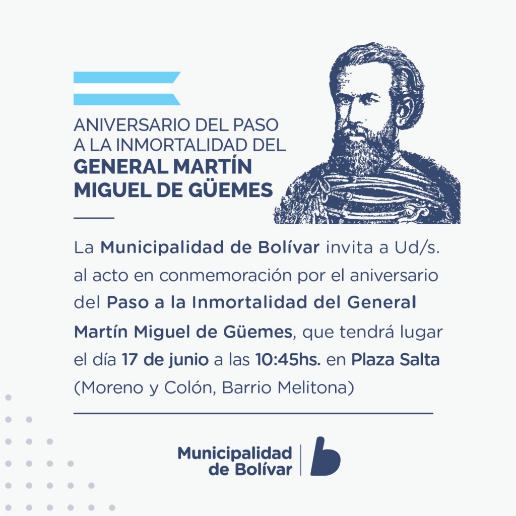 Cabe recordar que cada 17 de junio se conmemora el Paso a la Inmortalidad de Güemes, un importante militar y político argentino que participó activamente en la guerra para la independencia de Argentina.