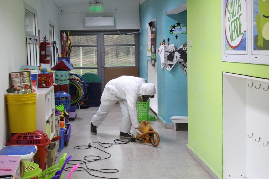 Tareas de desinfección en los Jardines Maternales Municipales.-