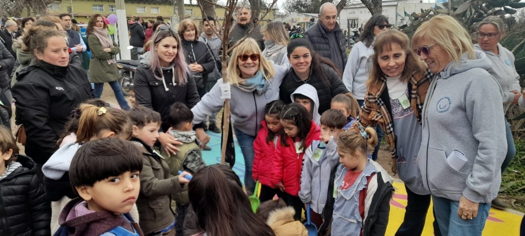 Cuando inició este proyecto, fue creciendo. Empezábamos con cinco plantitas, terminamos con 42. Empezamos solo haciendo el bulevar y nos trajeron la propuesta de unir a la Escuela nº502, que también tenía un lindo proyecto, la gente de la municipalidad y dijimos: claro, ahí va a estar Uniendo Sonrisas.