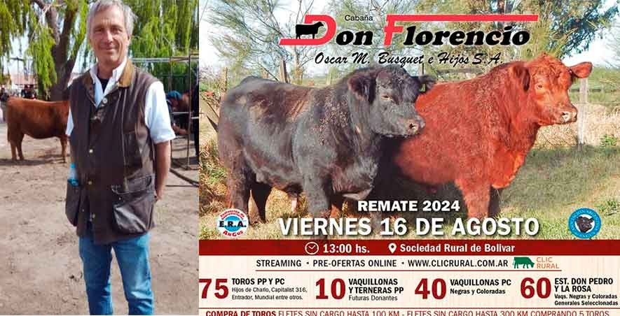 Cabaña Don Florencio brinda este viernes desde las 13 horas, su remate anual en instalaciones de Sociedad Rural. La firma martillera es Jorge y Martín de la Serna y en Radioshow dialogamos con el titular de la cabaña, quien brindó detalles puntuales respecto de los animales que pondrán a la venta, preofertas, tarjetas bancarias y plazos de pago. Recomendamos escuchar la entrevista completa.-