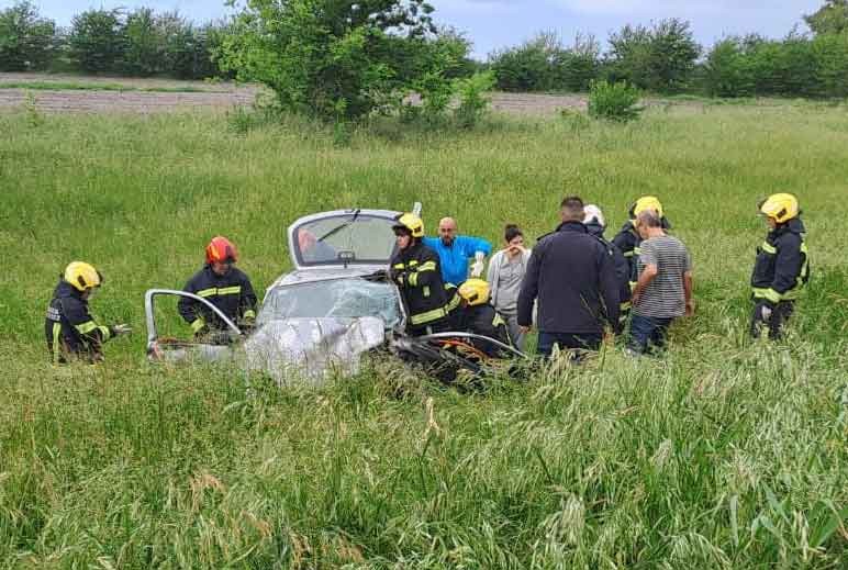 Uno de los ocupantes del Corsa, que terminó en la cuneta, debió ser rescatada del auto por los Bomberos Voluntarios de la vecina localidad.