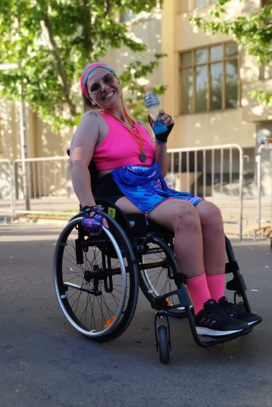 Sí, se me dio por largar la Correcaminata porque quería hacer los diez kilómetros, y no pudo ser. Alejandro Maldonado me iba a conseguir una silla, pero le avisé tarde y no me daban las medidas porque soy bastante larga y caderona. Entonces tiene que ser tiene que ser una especial a la medida mía y no llegaban, con tiempo no llegaban.