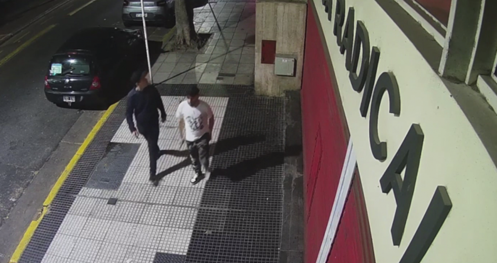 A la 1.41 del sábado pasado, un automóvil de un modelo nuevo de la marca Citroen estaciona unos metros delante de la puerta de ingreso al Comité Nacional. Bajan dos personas jóvenes que primero recorren la zona, uno de ellos saca un teléfono y aparenta enviar un mensaje de audio mientras el otro se sienta frente al tablero eléctrico del edificio. Luego lo fuerzan y dejan sin luz al edificio.