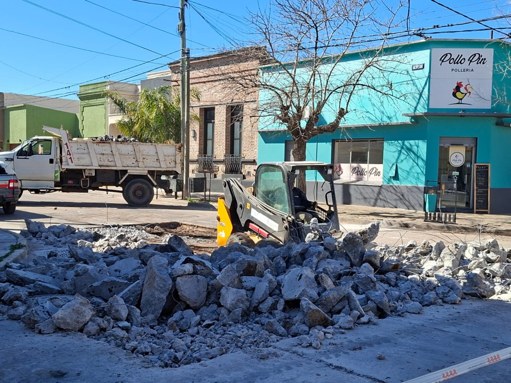 El equipo de Obras Públicas del Municipio trabaja sobre la intersección de las calles Alvear y Roca.-