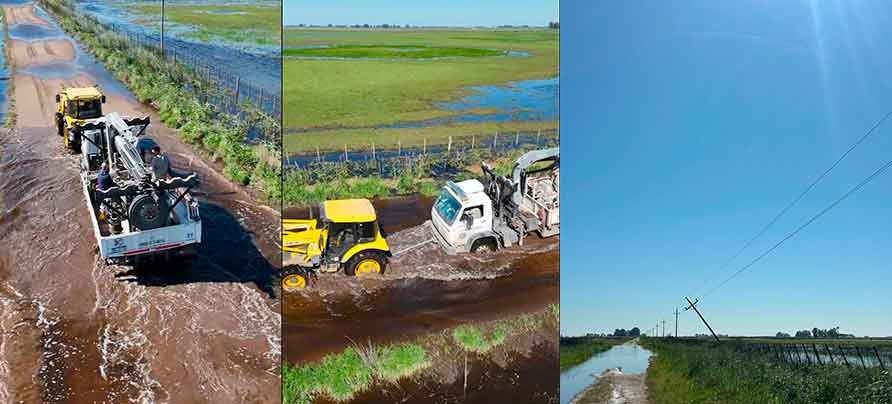 silotaLas condiciones del terreno, producto de la gran cantidad de agua caída, dificultaron el acceso a muchos establecimientos rurales. En varios casos, los caminos se encontraban anegados o con zonas de suelo blando que impedían el ingreso de los camiones de trabajo. Ante este escenario, los operarios debieron continuar las tareas a pie o utilizando tractores facilitados por productores de la zona, lo que permitió acceder a los lugares más complicados.