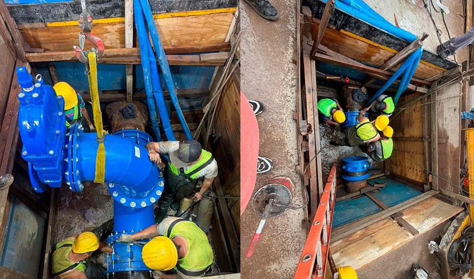 Tal como se anunció previamente, fueron realizados los trabajos de empalme y colocación de válvula de corte en el marco del recambio integral de cañerías de la ciudad. -